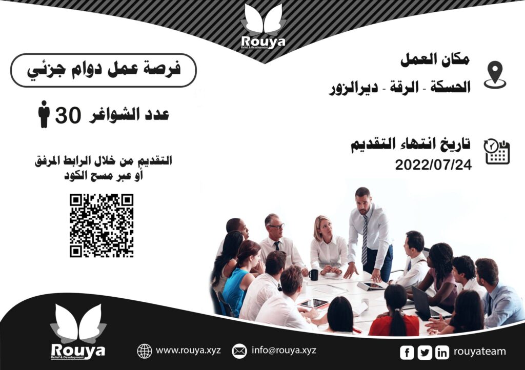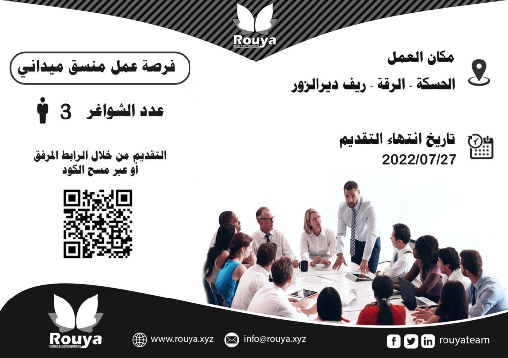 مكان العمل : ديرالزور – الرقة – الحسكة